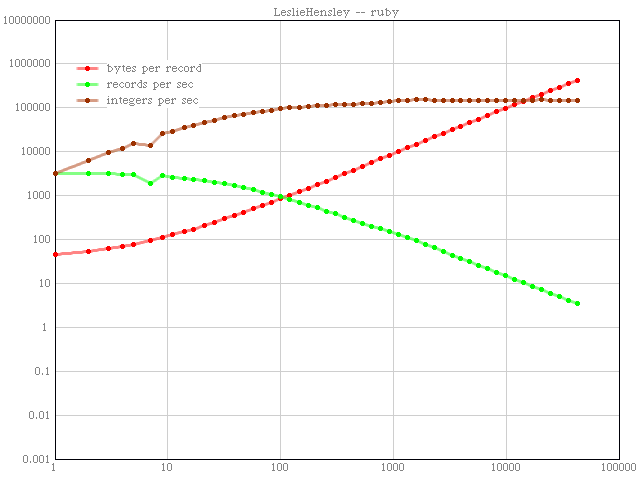 All results are plotted to the same scale with this custom program written in open source Squeak Smalltalk. I wrote a new program because I couldn't find one that could read tabbed text, write gifs, and do log plots all at the same time. I think my charts look much better than excel's. I hope you agree. If you look closely you will notice that the lines are transparent and anti-aliased. This let me use wider lines which look better in thumbnail. .