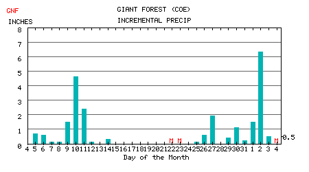 Extreme rainfall in the the upper Kaweah River drainage in Sequoia National Park combined with warm temperatures brought a flash flood, the likes of which, has not been seen since 1969 or 1955. Eleven inches of rain fell at Hockett Meadow at the 8500 foot elevation in a 24 hour period. Lake Kaweah took on 40% of it's total capacity in a 24 hour period and rose nearly 5 feet per hour at it's fastest point.