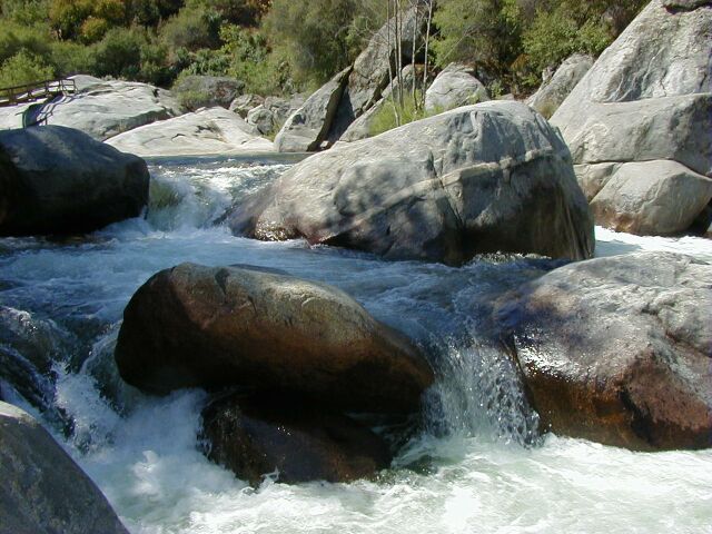 The river drops at 240 ft/mile for the next 0.6 miles as it winds around the Ash Mountain Park Headquarters. There are Numerous Class 5 Drops in this section. There is a trail to the river from the Park Headquarters. If the last quarter mile seemed a bit much, then the trail might be the best option. This is also a possible take out point, avoiding the portage entirely.
