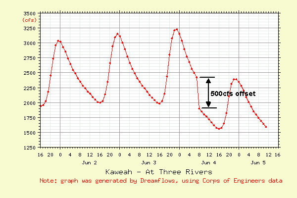 • 06-07-03 It appears that COE fixed their 500cfs data offset problem mentioned 6-4