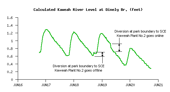 • 05-25-03 9AM Sunday Kaweah At Dinely Bridge 2.20 ft., SCE at Park Boundary 6.4 ft., North Fork 1.50 8:30PM Sunday Kaweah At Dinely Bridge 2.50 ft.